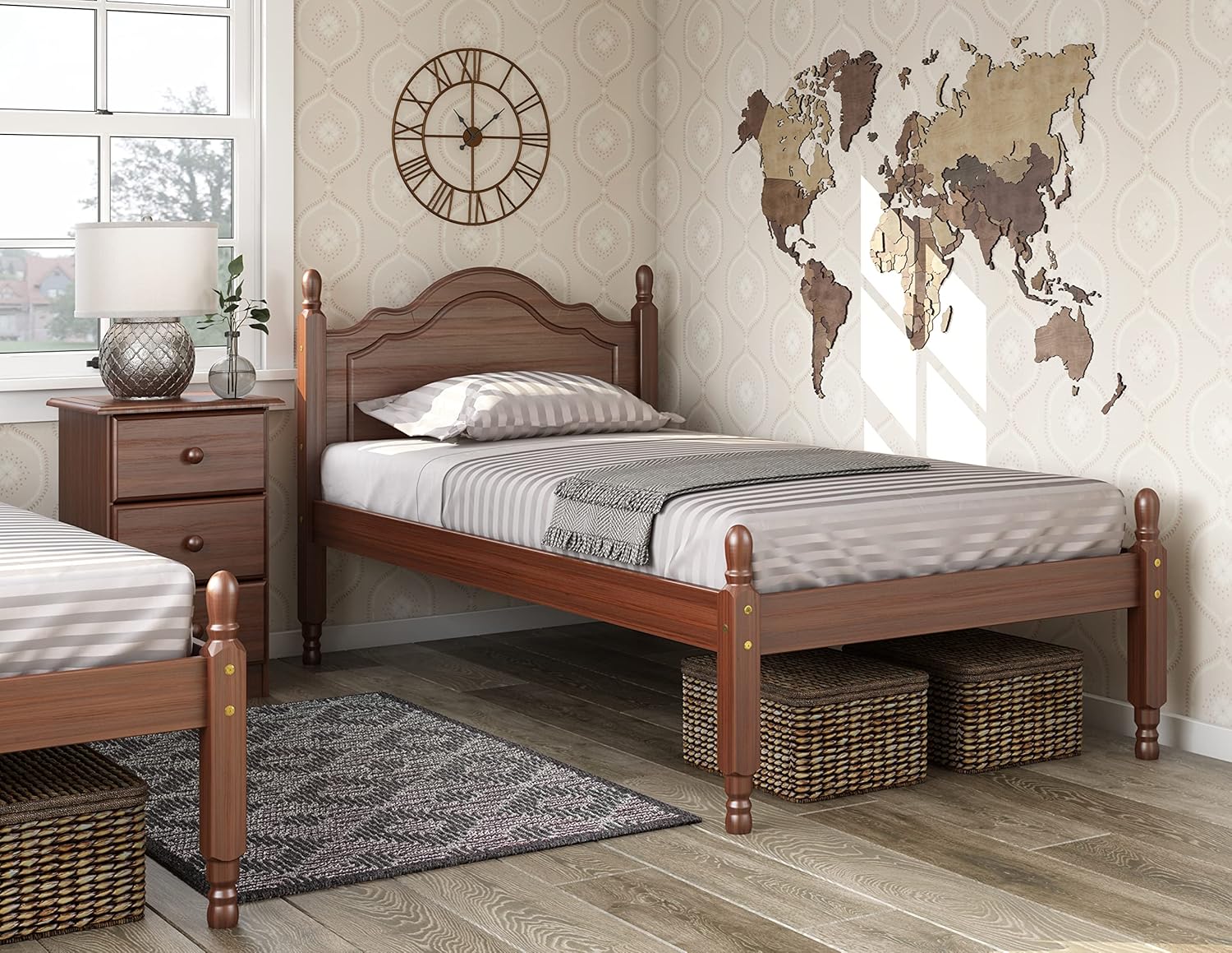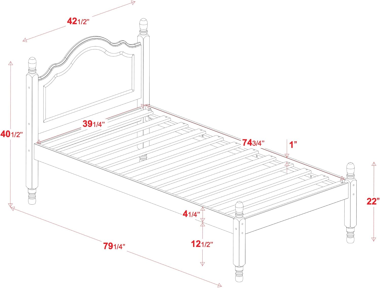 The Reston twin platform bed comes complete with twelve wooden slats engineered to support and extend the life of the mattress. It's a great addition to any bedroom it adorns. The craftsmanship of the Reston full platform bed is enhanced by its aesthetically pleasing, all wood construction. The precision carved, solid wood panel headboard is substantial, sturdy, and offers good pillow support, helping you drift off to a sound sleep. The beauty of 100% pine wood is enriched by a hand painted finish which gives it a silky smooth feel. It is available in twin and full sizes as well as five colors. It can complement an existing room or be paired with other perfectly compatible furniture pieces from Palace Imports. With our one‐year worry free warranty, you can rest easy in your Reston twin platform bed.Overall Size: Standard twin 79.25"l x 42.5"w x 40.5"h Paint Finishes: White‚ Mahogany‚ Mocha‚ Honey Pine‚ Java 20% gloss Wood Samples: As actual color may vary‚ wood samples can be mailed out for color matching and wood quality assessment Construction and Features:12 pine wood slats includedSolid wood panel headboard carved with CNC routerEach slat is attached to rails individually creating a strong rigid structure3/4" thick rails2.5" by 2.5" postsMetal‐to‐metal rail to post connections for better securityAccommodates standard twin size mattresses up to 8" thickShips ready‐to‐assemble (RTA) in 2 boxes and requires assemblyWood: 100% Brazilian farm grown pine wood kiln dried to prevent splitting and size distortion‐MADE IN BRAZIL‐